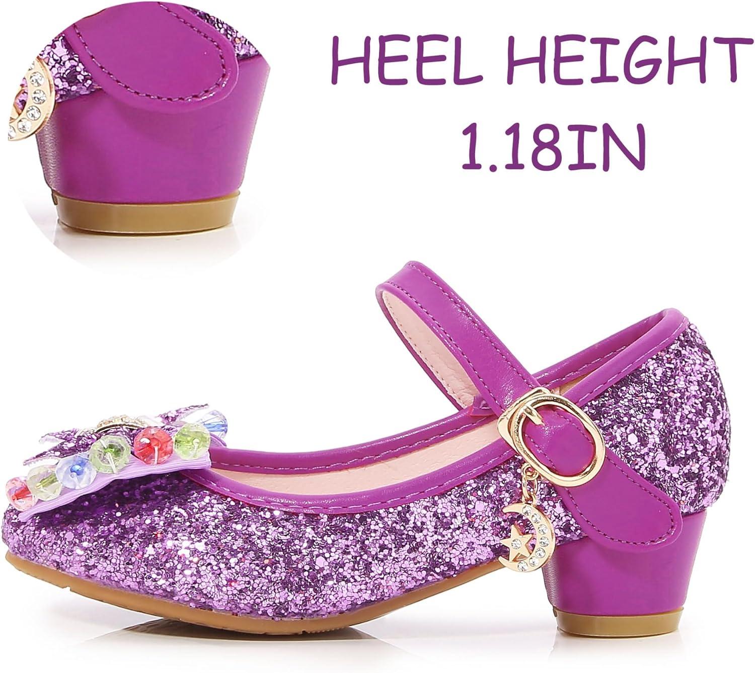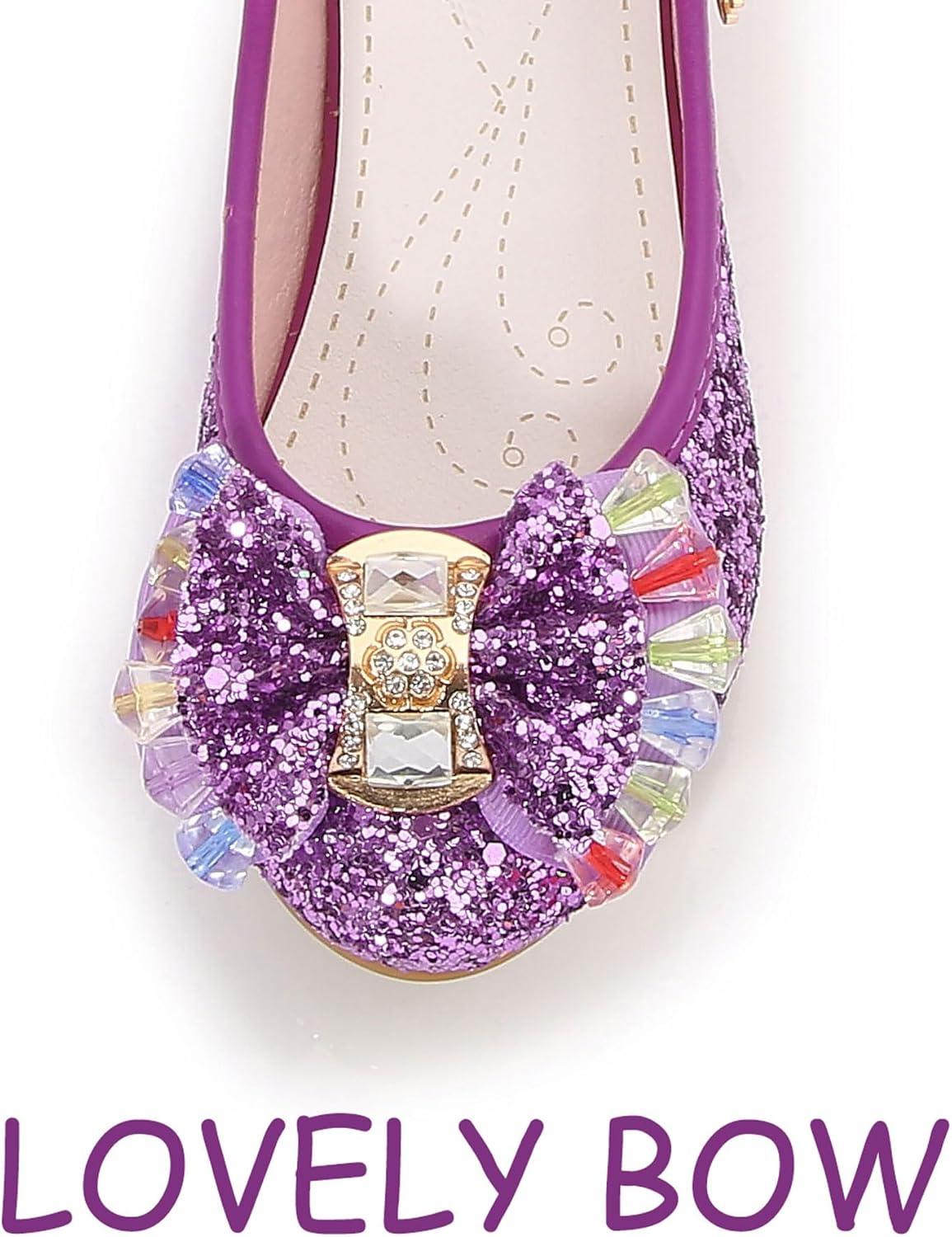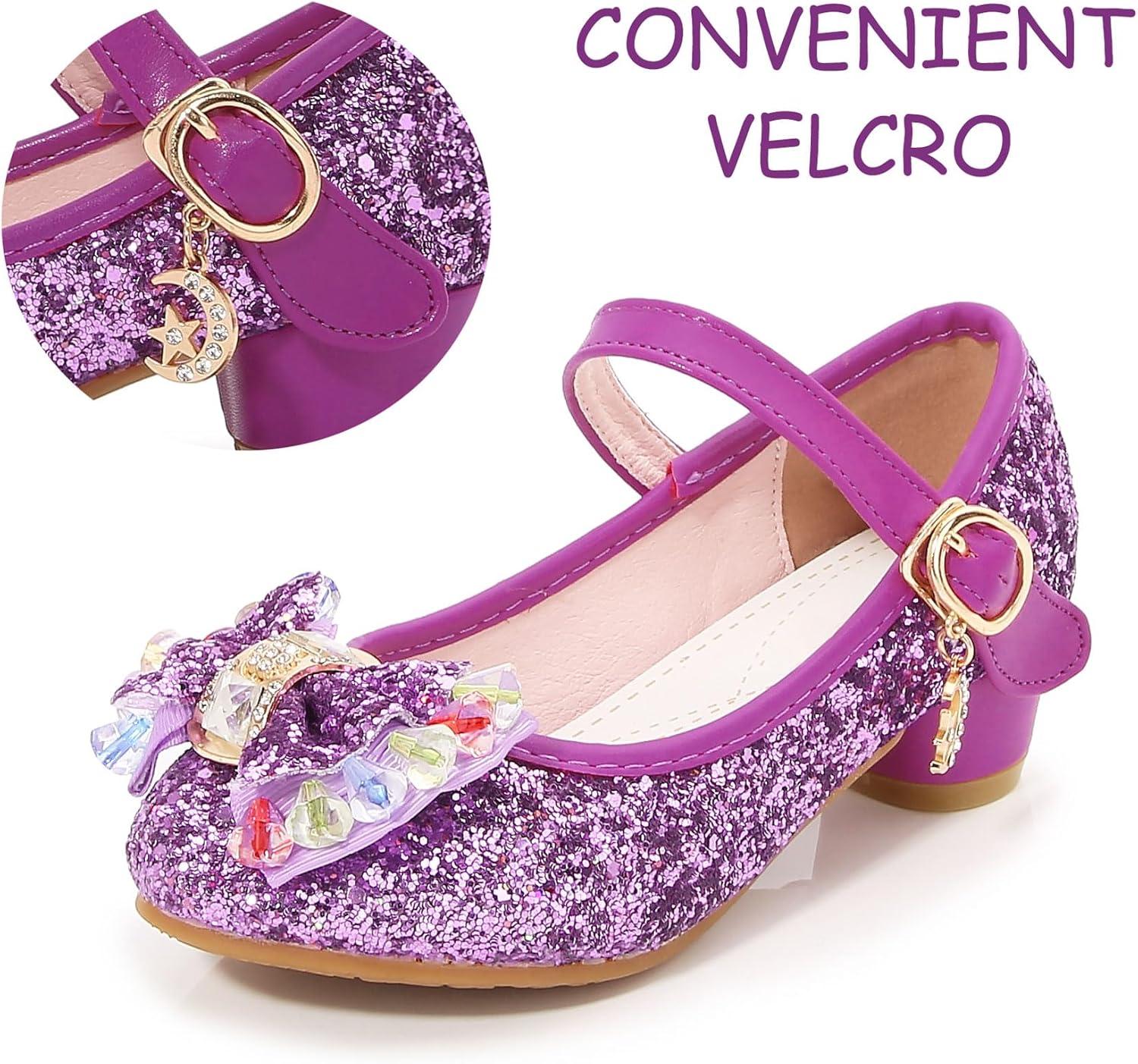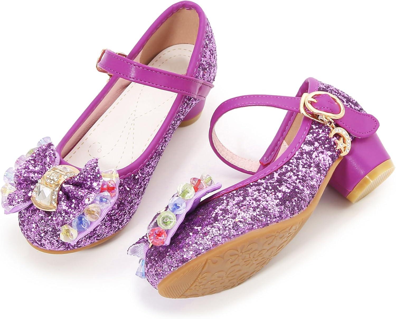 Girls Shoes Sparkle Mary Jane Low Heel Princess Flower Wedding Party Dress Shoes(S1purple)