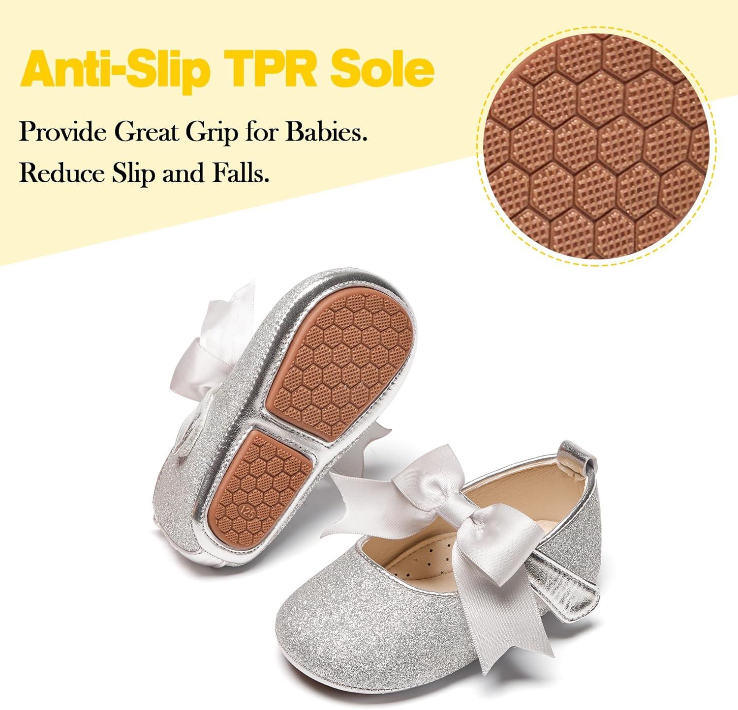 Kiderence Baby Girls Prewalker Mary Jane Flats Bowknot Princess Dress Shoes (Infant/Toddler)(F6638 Silver)