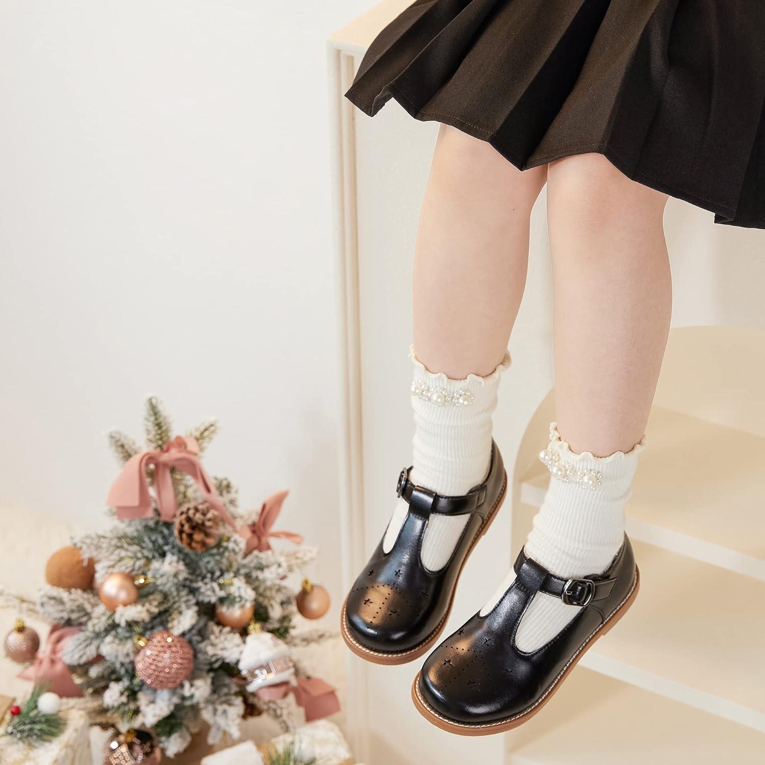 Kiderence Girls Flat Dress Shoes School Oxfords Marry Jane (Toddler/Little Kids)(C X02 Black)
