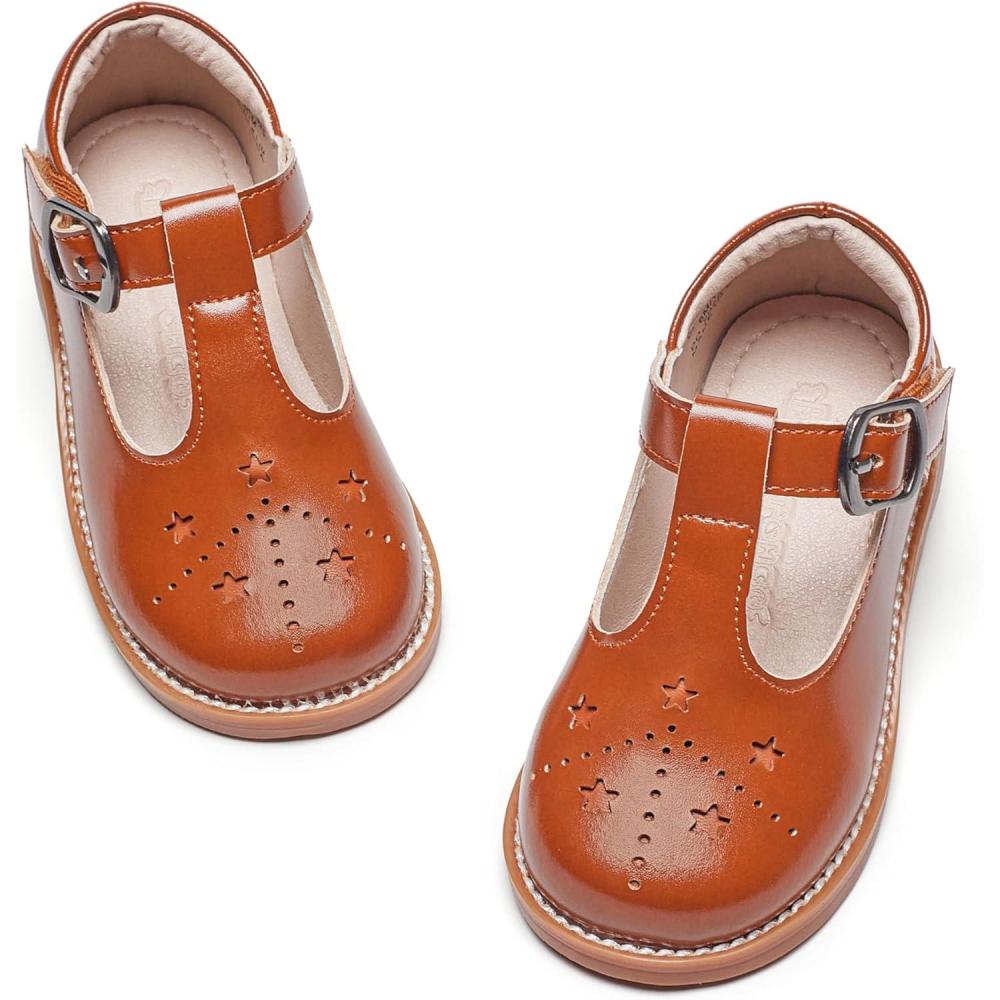Kiderence Girls Flat Dress Shoes School Oxfords Marry Jane (Toddler/Little Kids)(C X02 Brown)