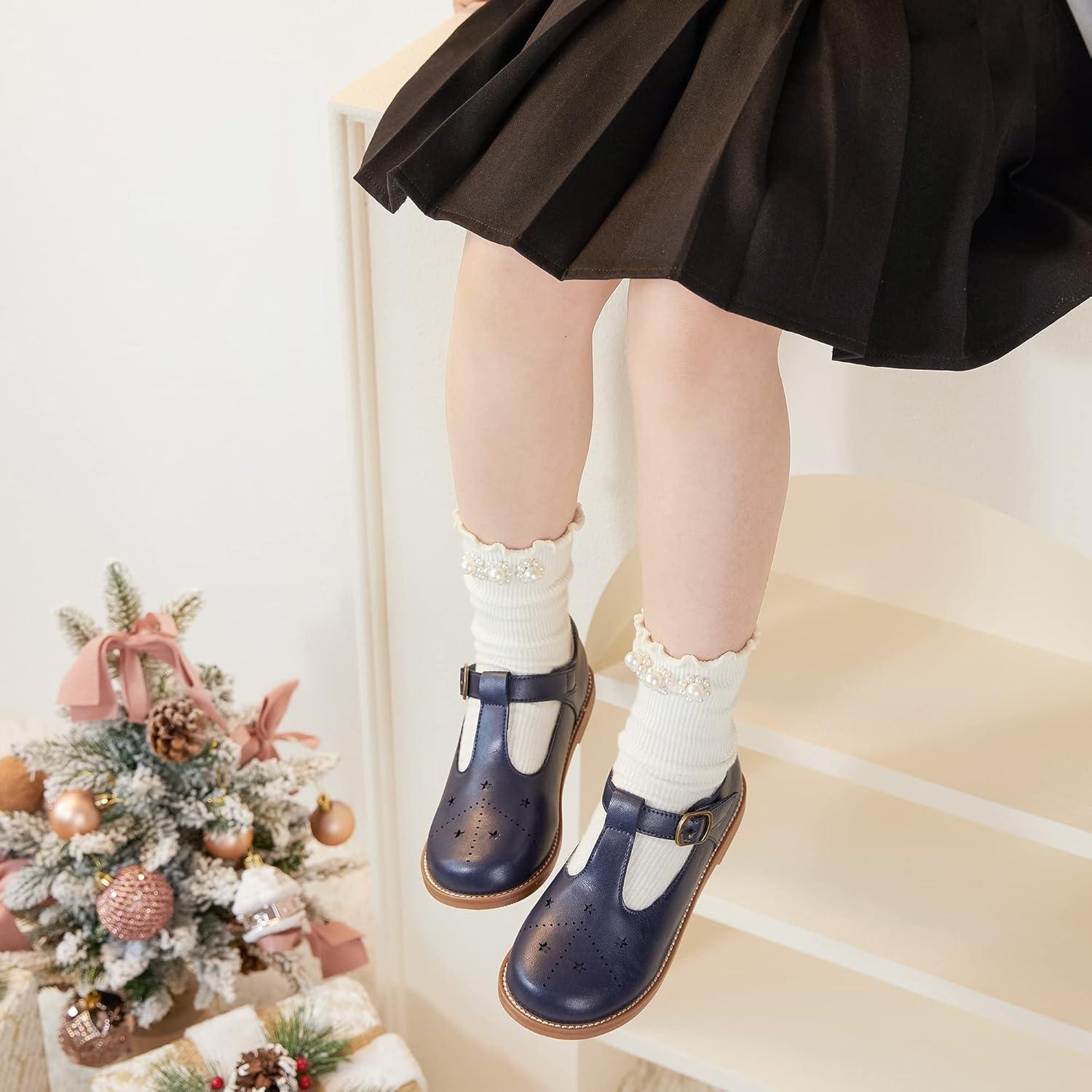 Kiderence Girls Flat Dress Shoes School Oxfords Marry Jane (Toddler/Little Kids)(Cx02 Navy Blue)