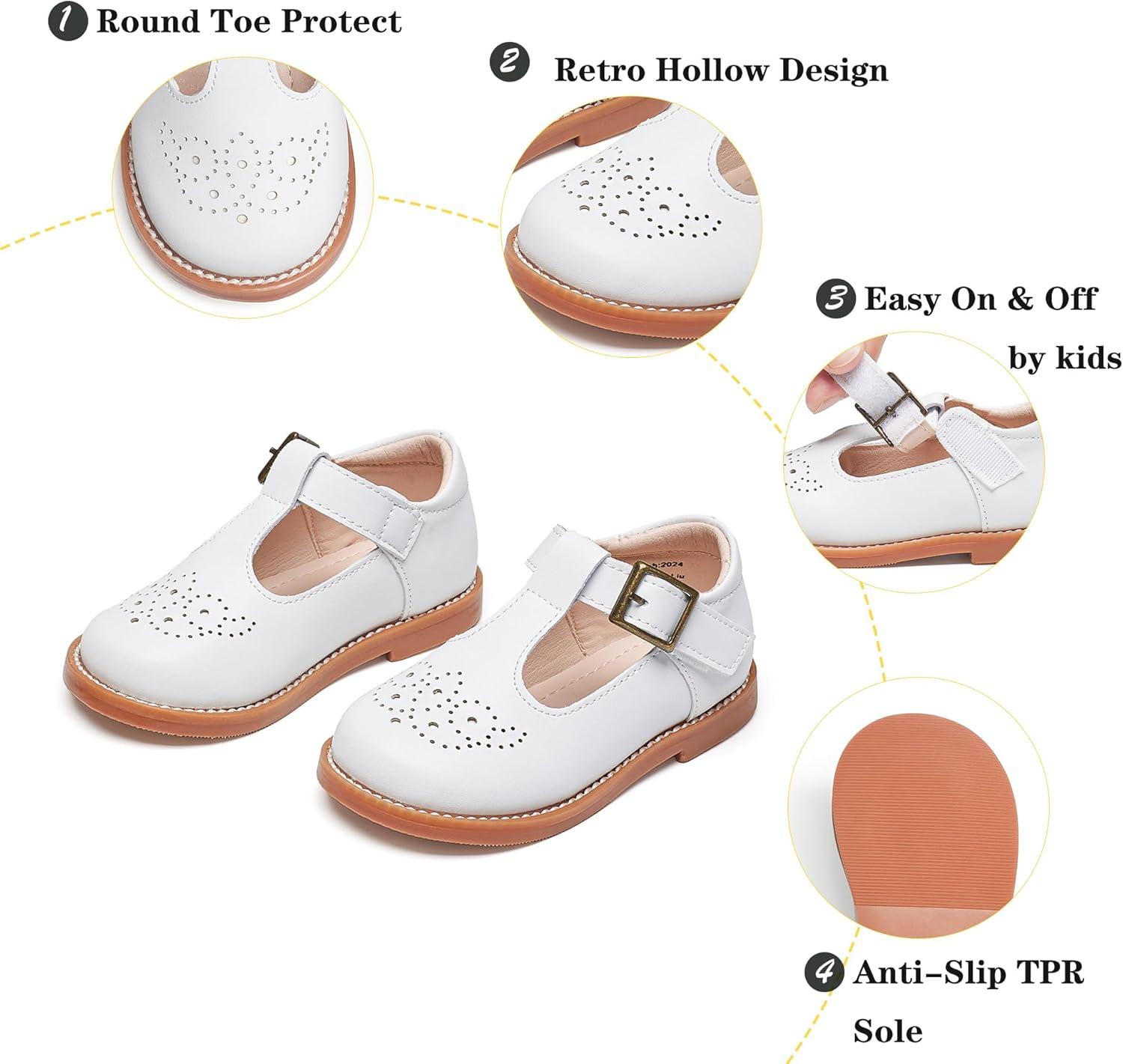 Kiderence Girls Flat Dress Shoes School Oxfords Marry Jane (Toddler/Little Kids)(F646 White)