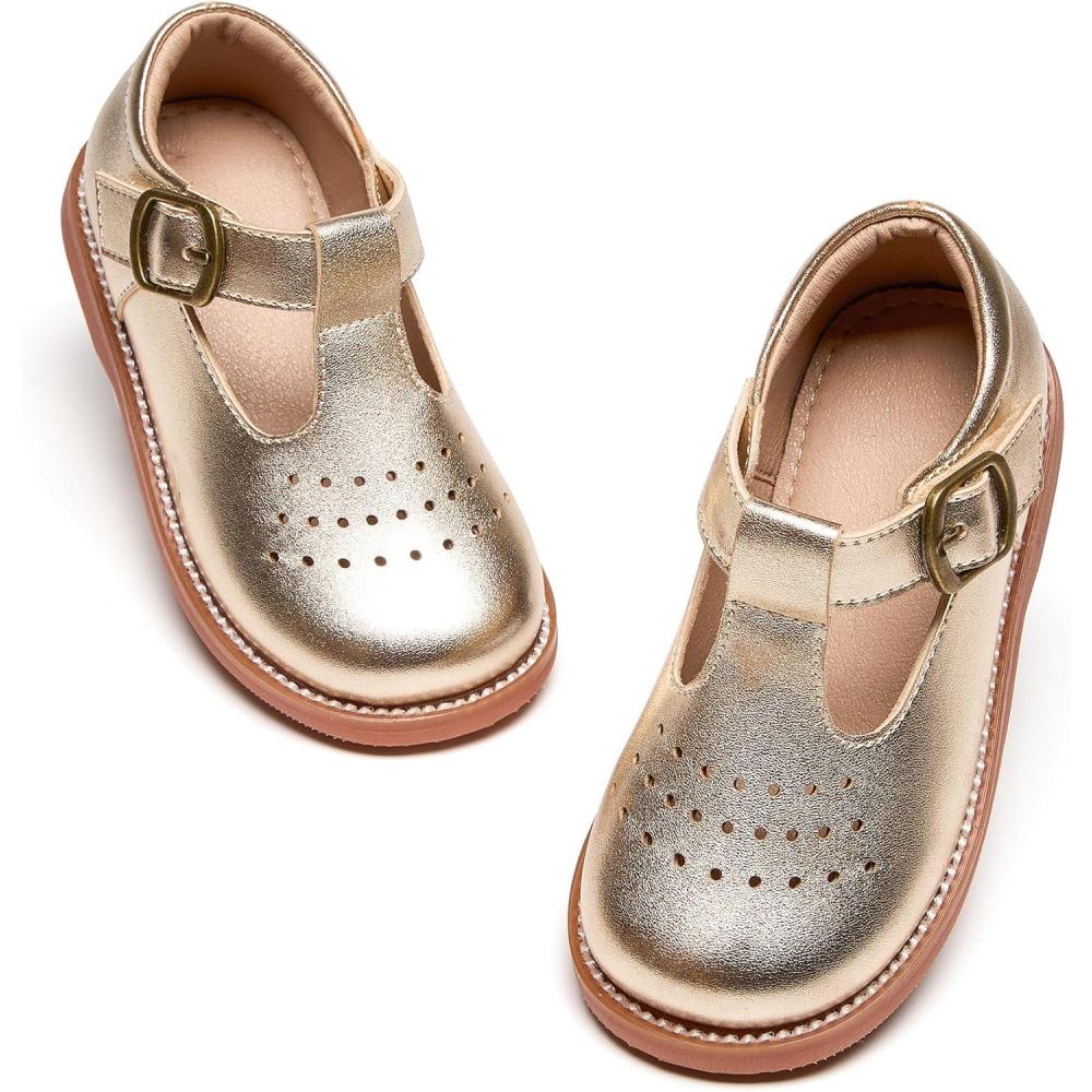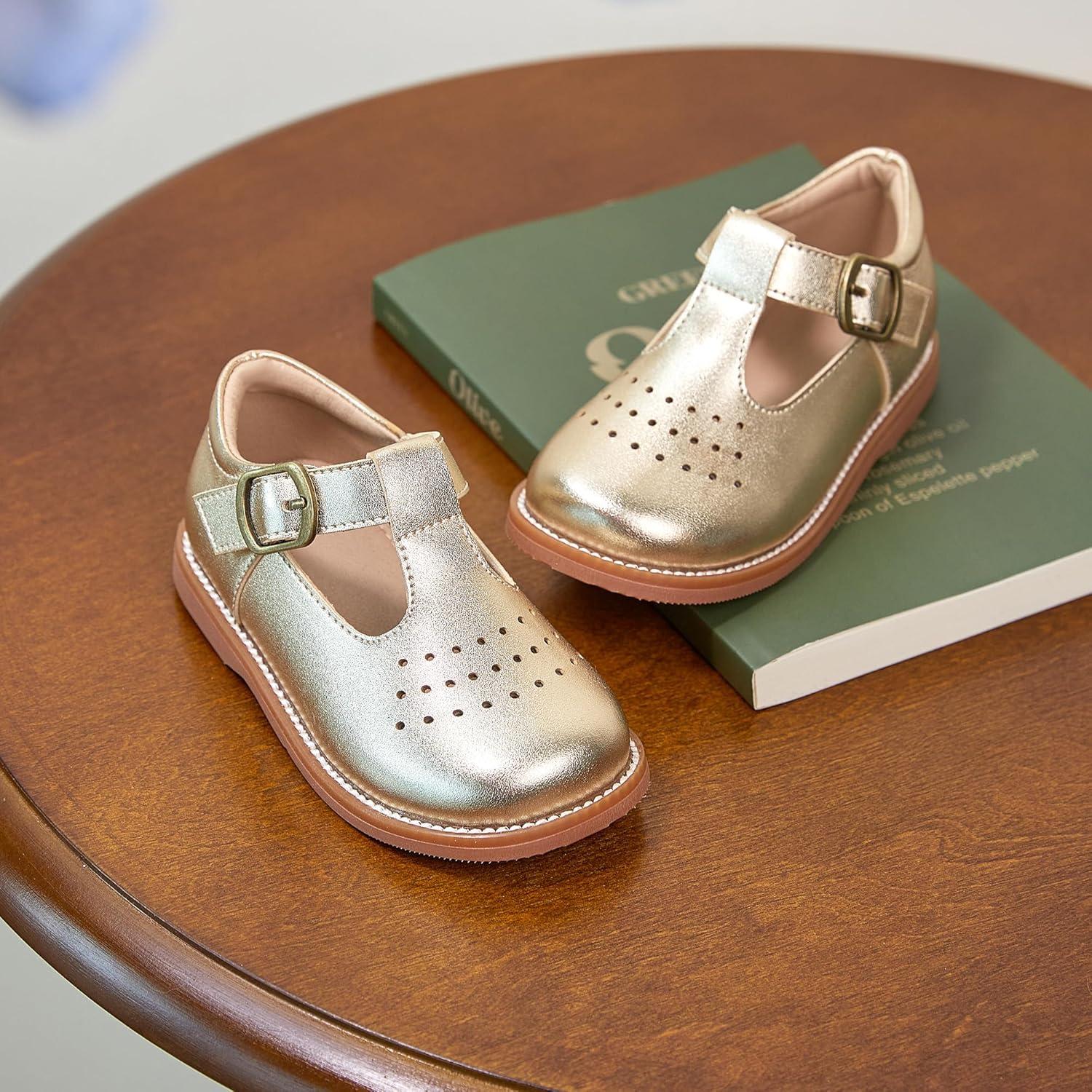 Kiderence Girls Flat Dress Shoes School Oxfords Marry Jane (Toddler/Little Kids)(F672 Gold)
