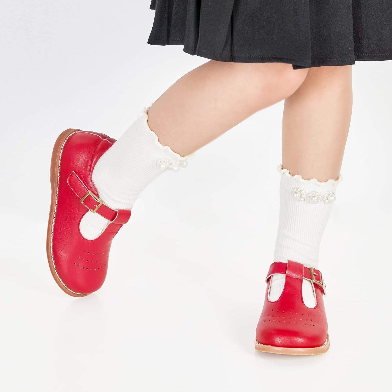Kiderence Girls Flat Dress Shoes School Oxfords Marry Jane (Toddler/Little Kids)(F672 Red)