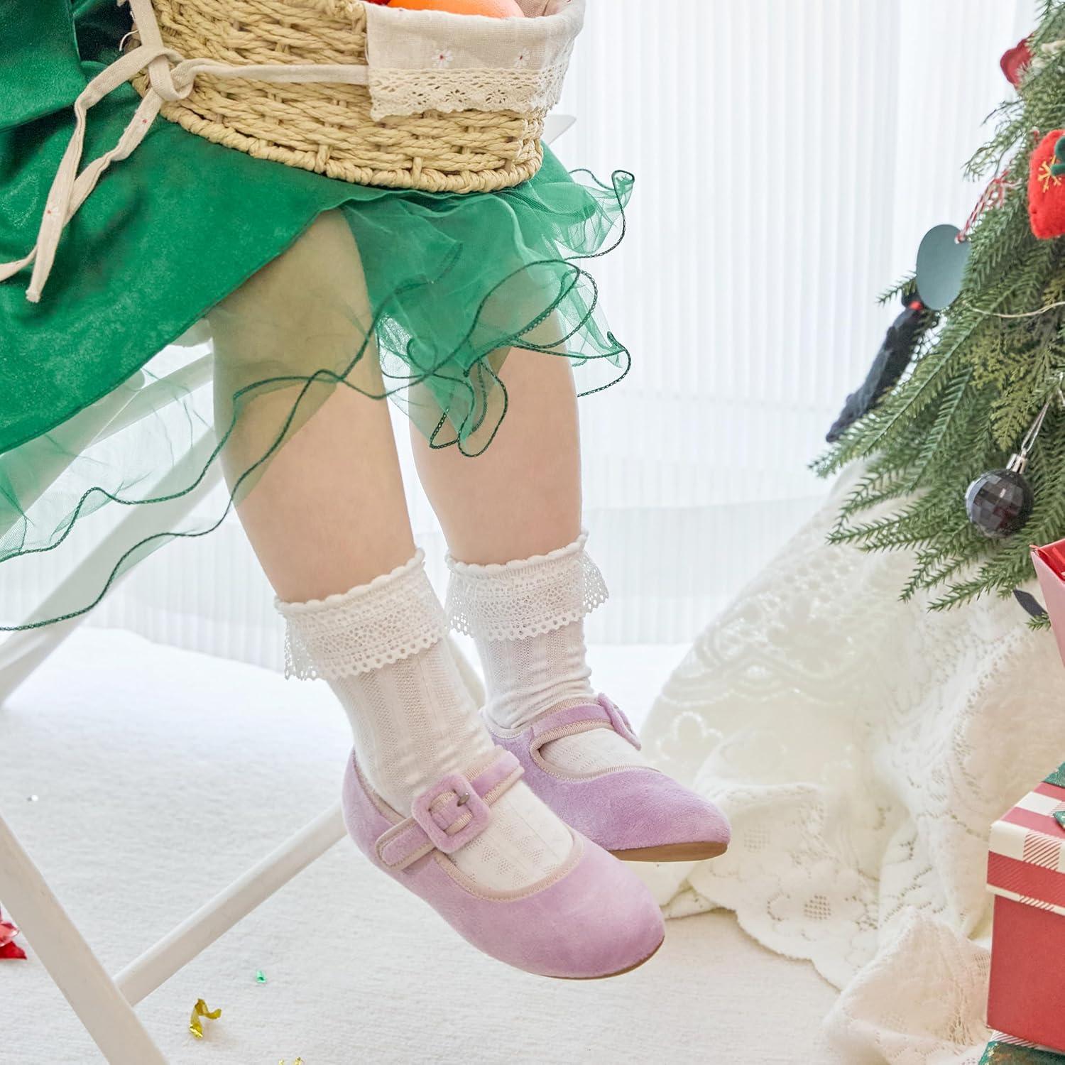 Kiderence Toddler Girls Dress Shoes Little Kids Mary Janes Ballet Flats Toddler(Ck512 Purple)