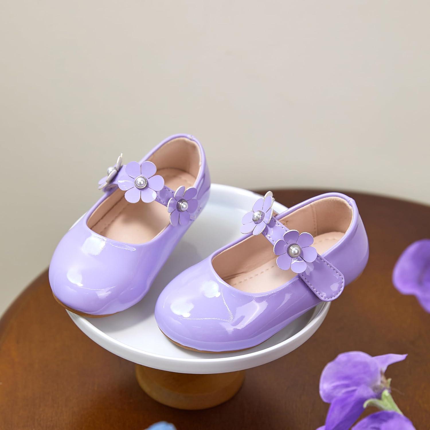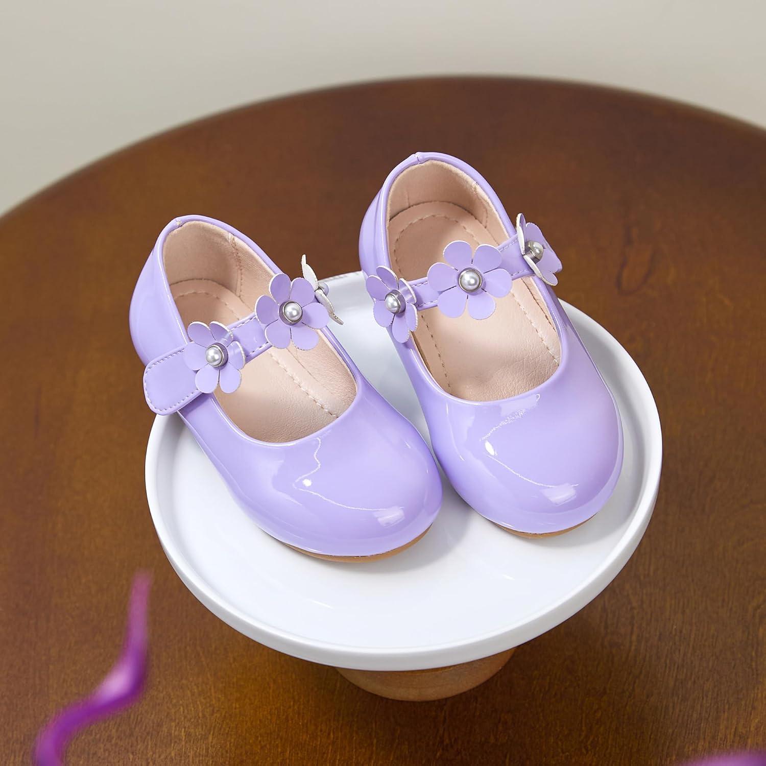 Kiderence Toddler Girls Dress Shoes Little Kids Mary Janes Ballet Flats Toddler(Ck920 Purple)