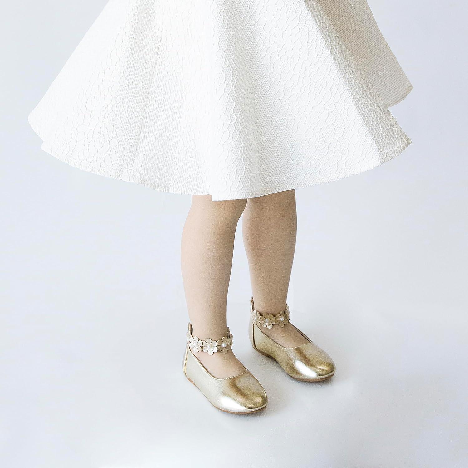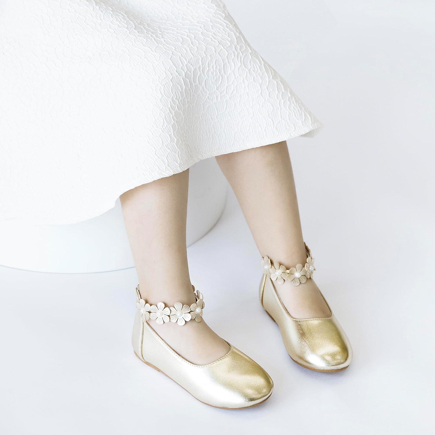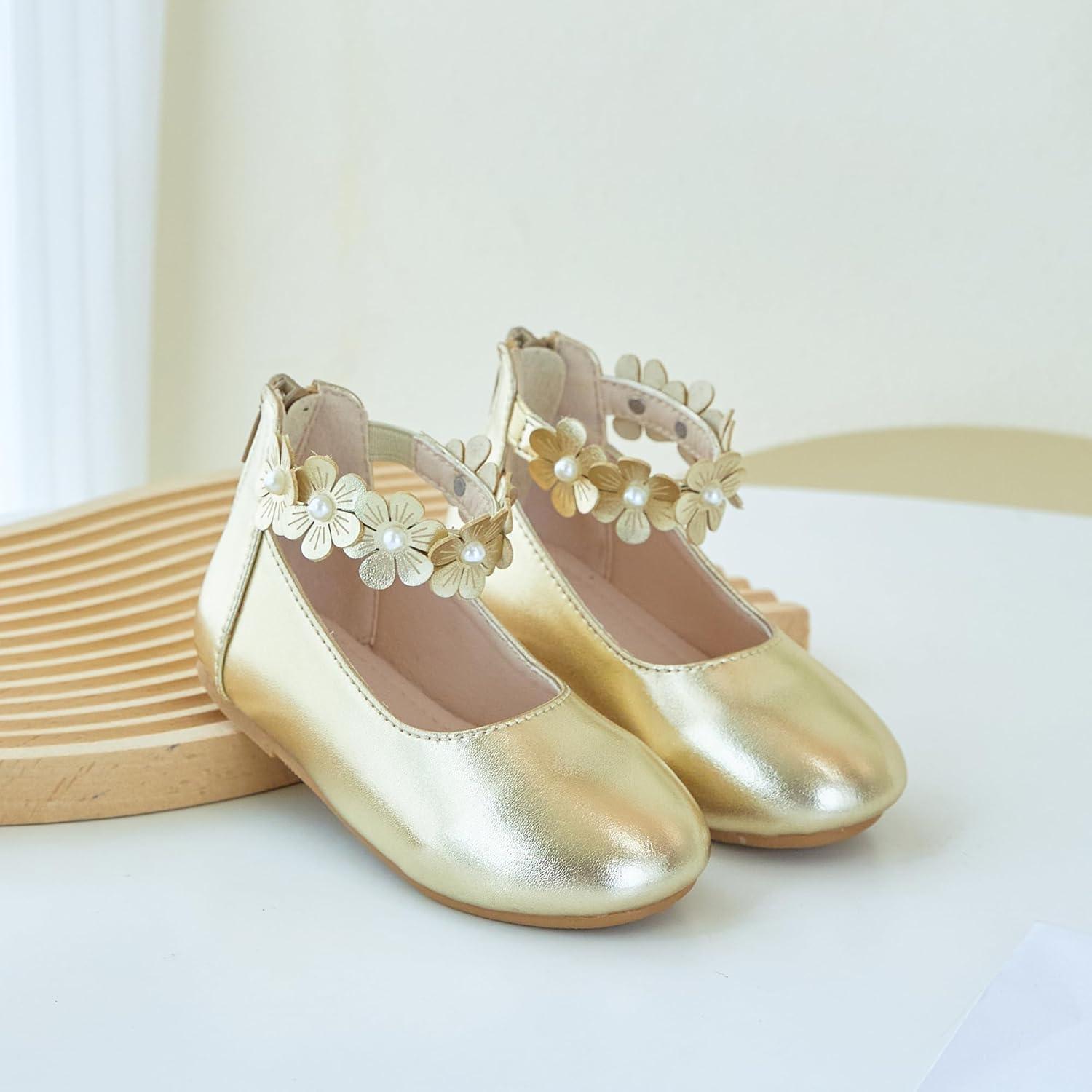 Kiderence Toddler Girls Dress Shoes Little Kids Mary Janes Ballet Flats Toddler(Ck921 Gold)