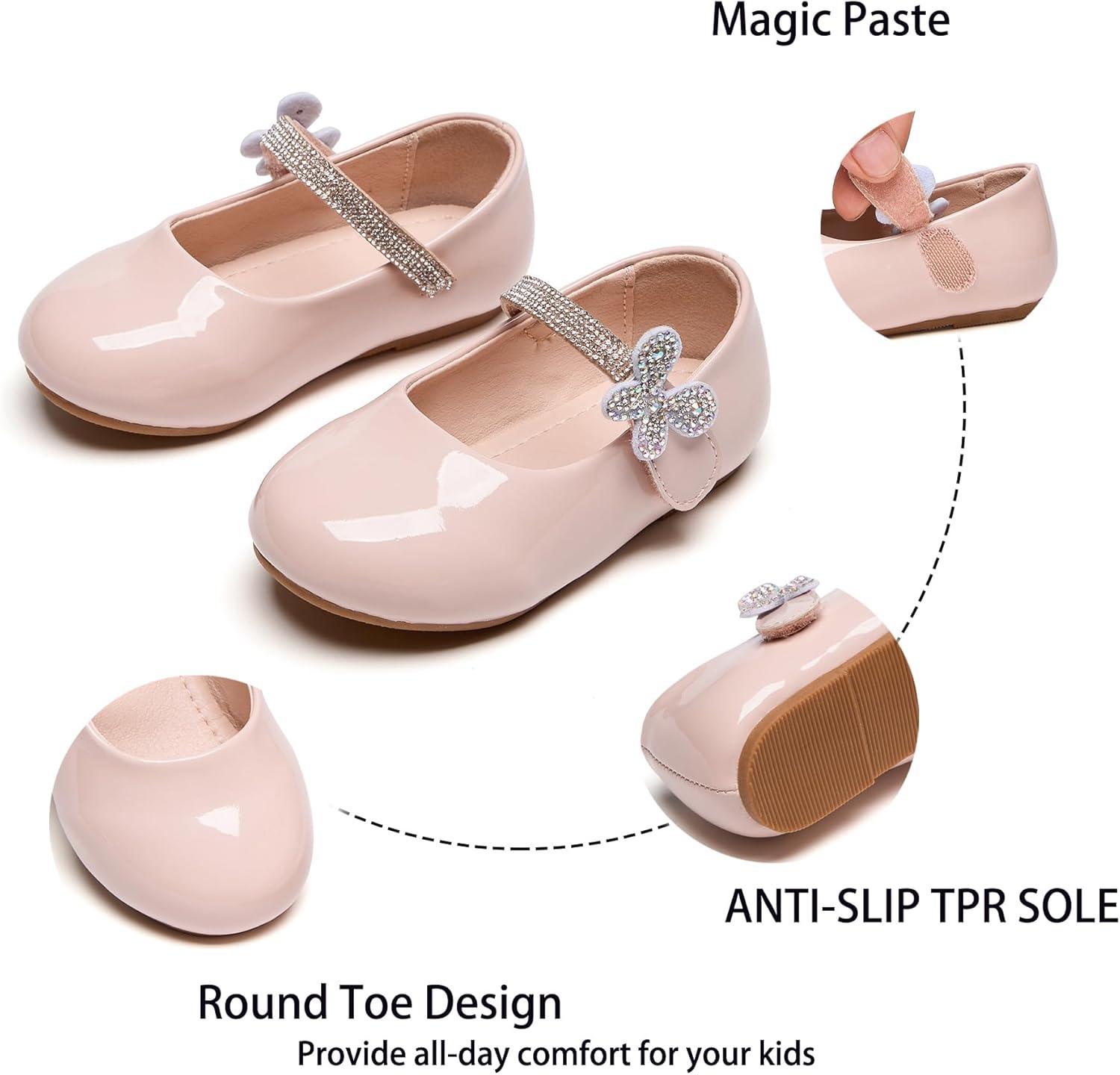 Kiderence Toddler Girls Dress Shoes Little Kids Mary Janes Ballet Flats Toddler(Ck925 Nude)