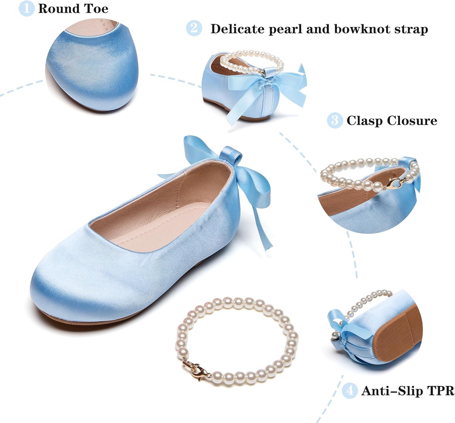 Kiderence Toddler Girls Dress Shoes Little Kids Mary Janes Ballet Flats Toddler(Ck927 Light Blue)