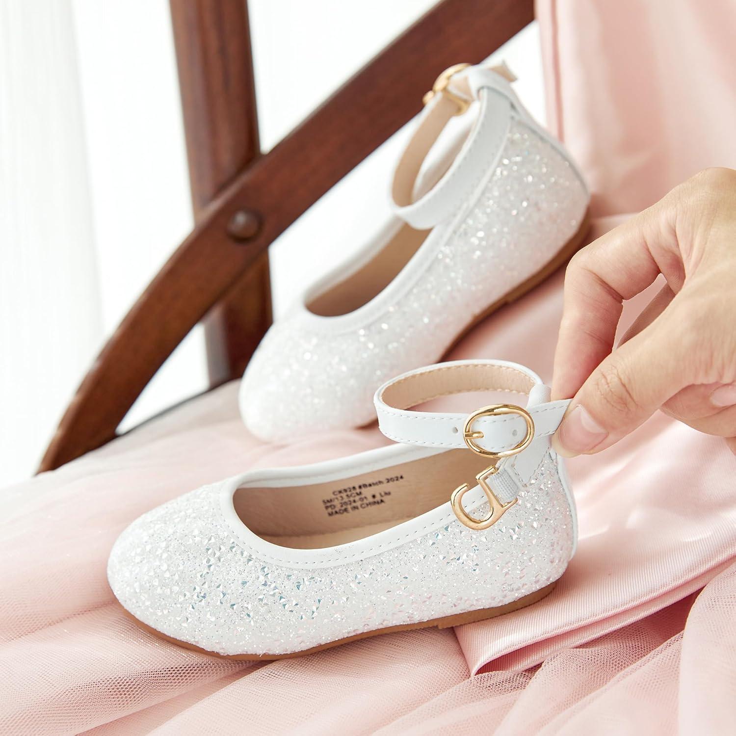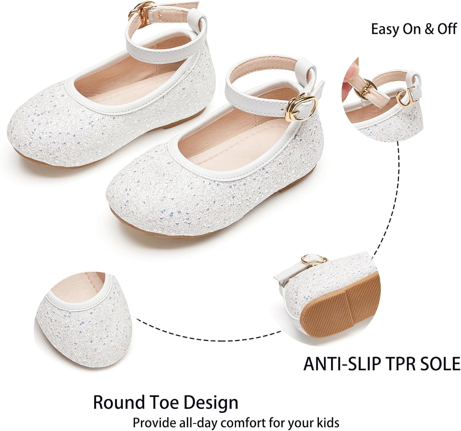 Kiderence Toddler Girls Dress Shoes Little Kids Mary Janes Ballet Flats Toddler(Ck928 White)