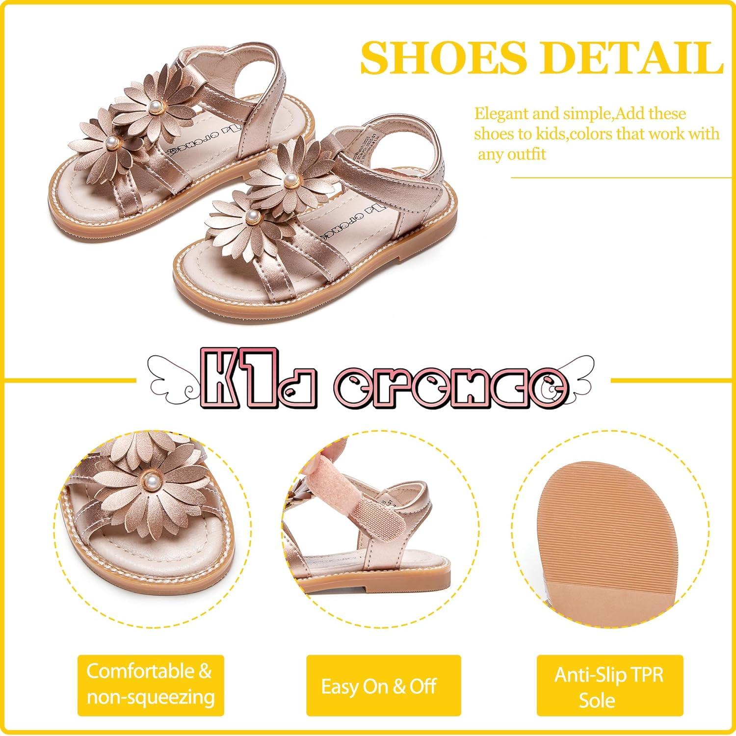 Kiderence Toddler Girls Sandals Little Girls Kids Shoes Girls Sandals Toddler(Ck305 Champagne)