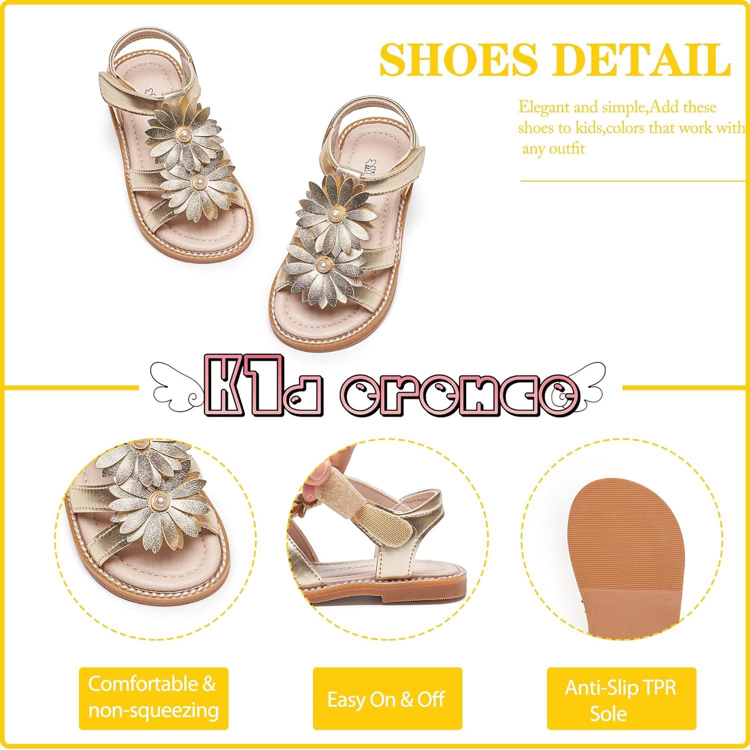 Kiderence Toddler Girls Sandals Little Girls Kids Shoes Girls Sandals Toddler(Ck305 Gold)