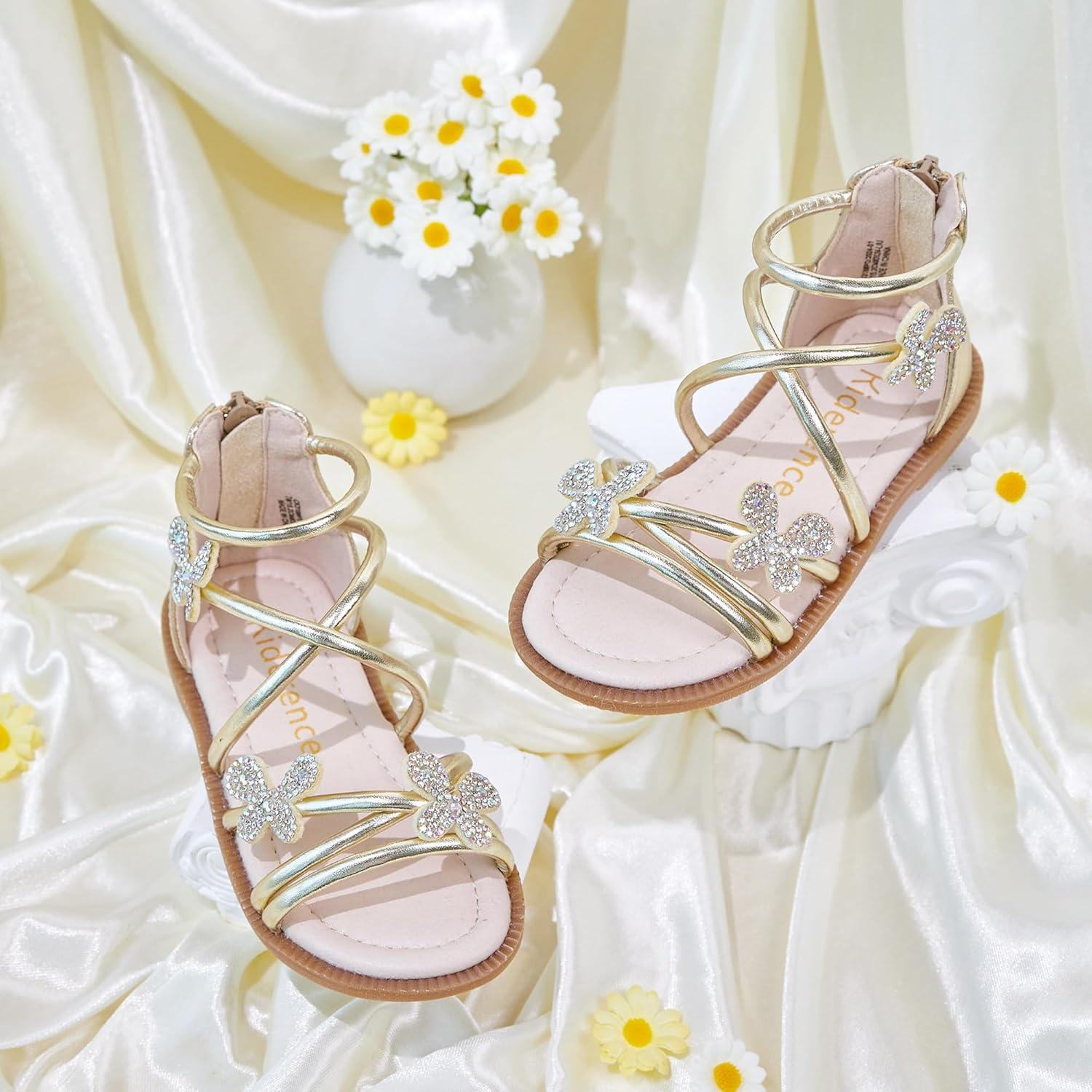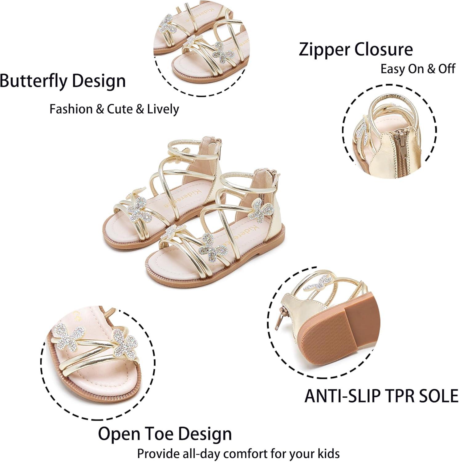 Kiderence Toddler Girls Sandals Little Girls Kids Summer Shoes Toddler Sandals(Ck318 Gold)