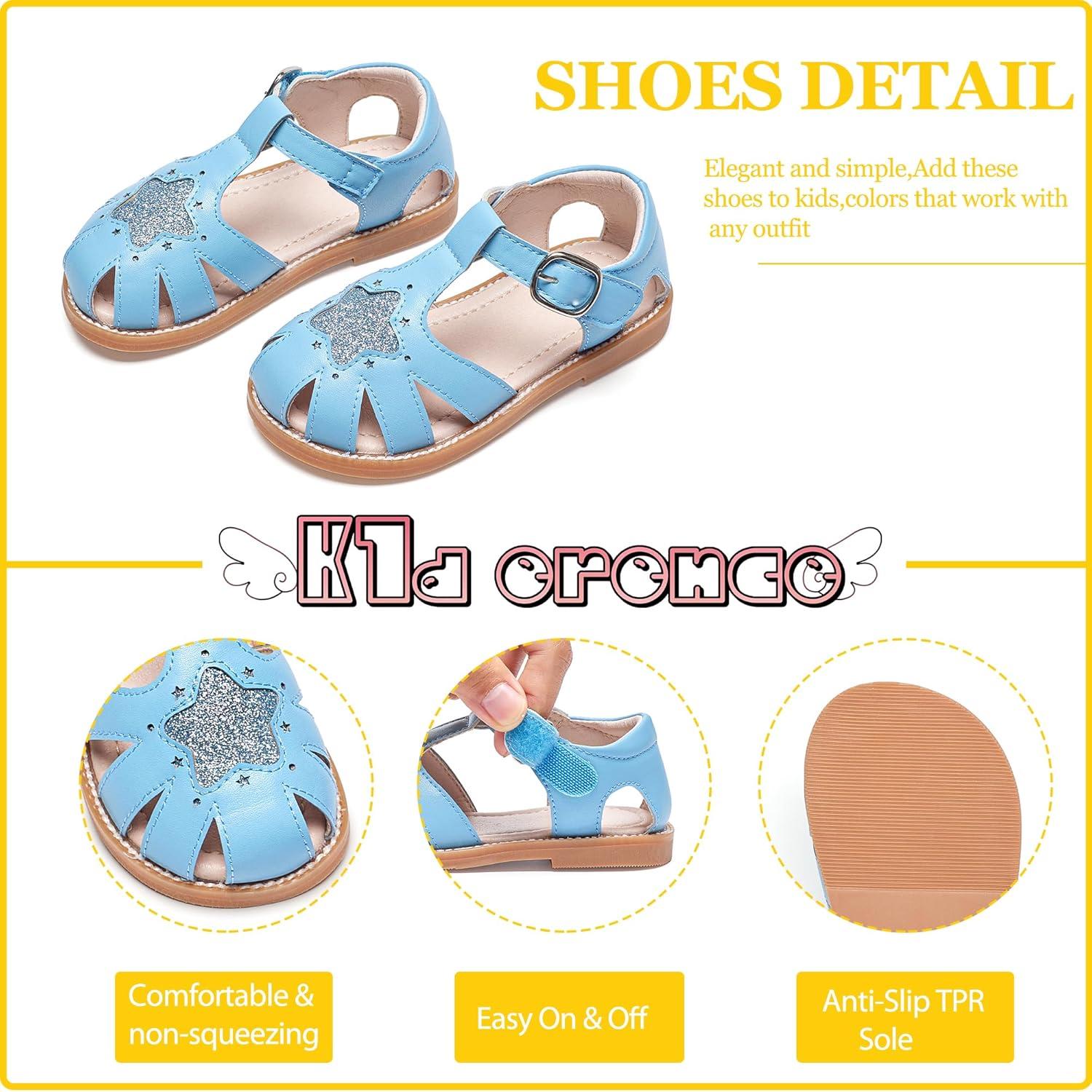 Kiderence Toddler Girls Sandals Little Girls Kids Summer Shoes Toddler Sandals(Ck520 Blue)