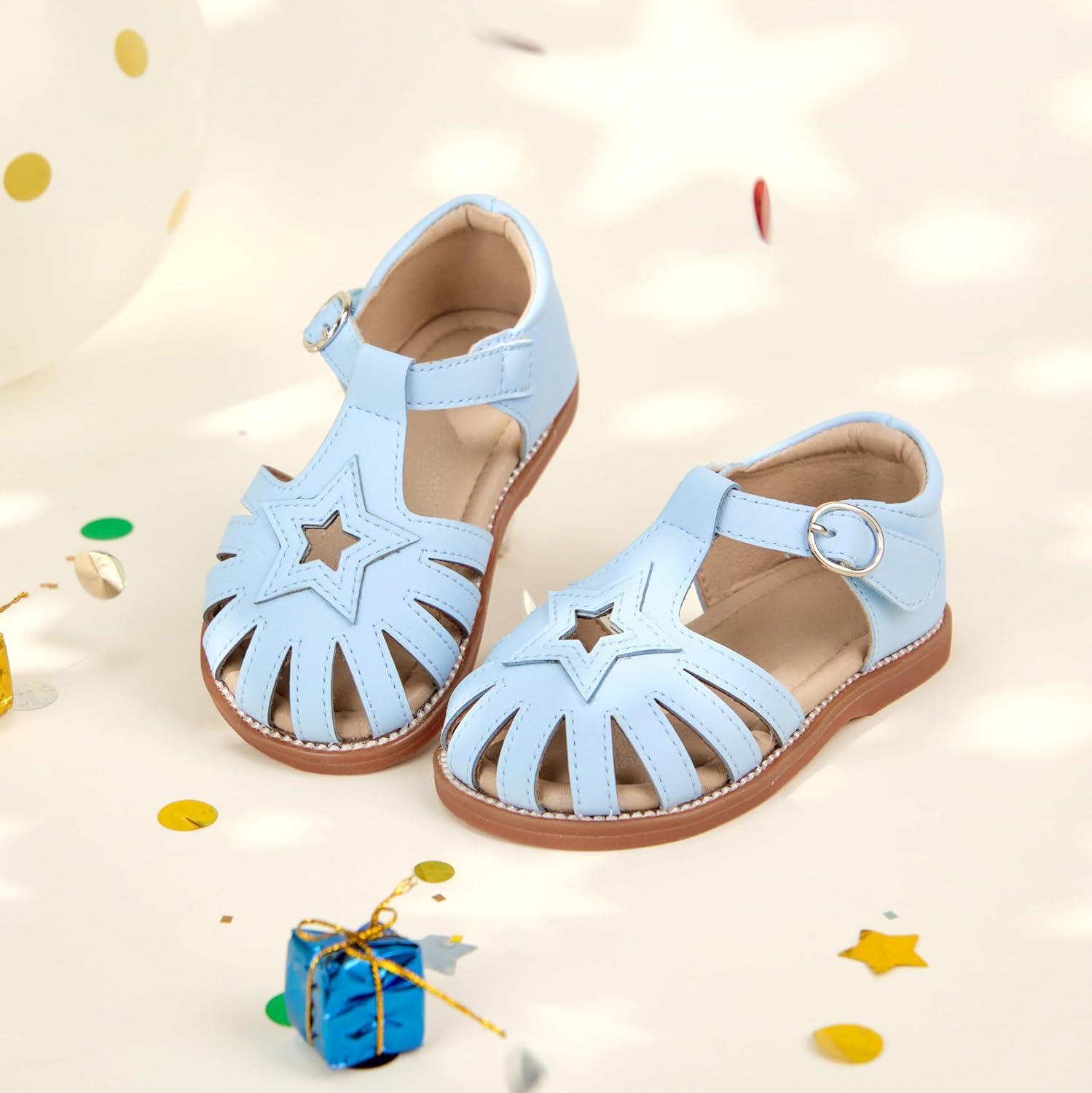 Kiderence Toddler Girls Sandals Little Girls Kids Summer Shoes Toddler Sandals(Ck533 Blue)