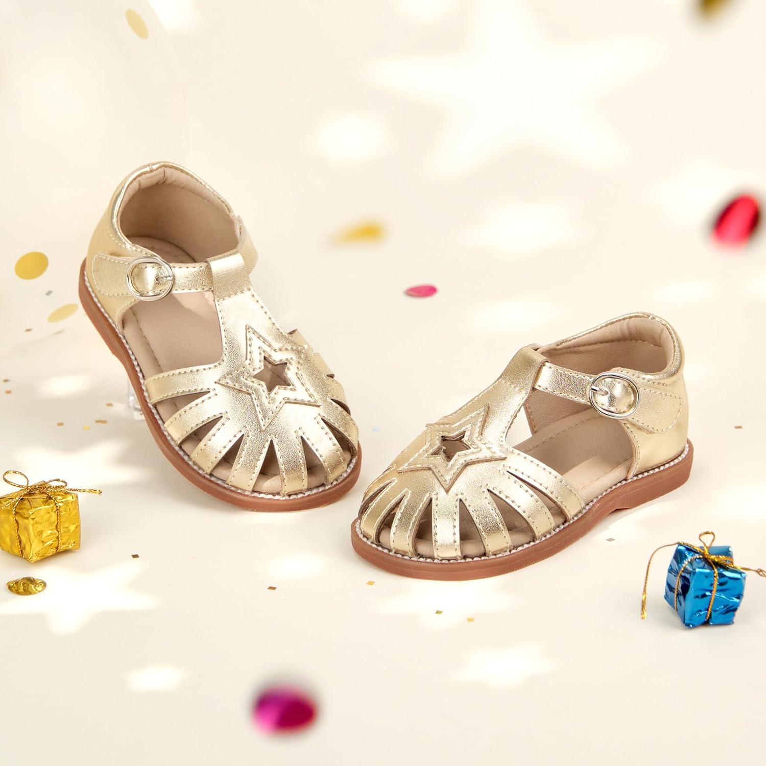 Kiderence Toddler Girls Sandals Little Girls Kids Summer Shoes Toddler Sandals(Ck533 Gold)