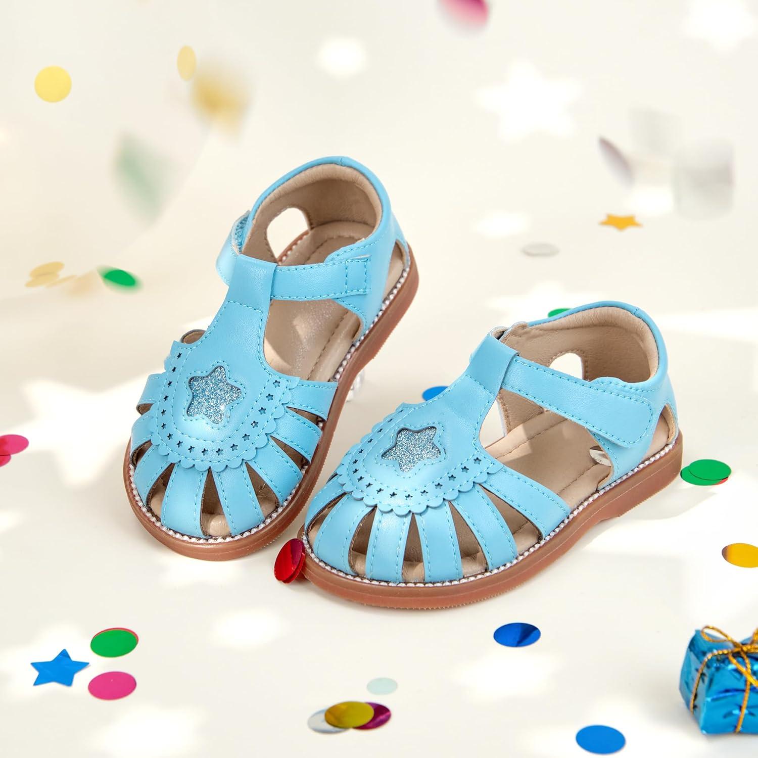Kiderence Toddler Girls Sandals Little Girls Kids Summer Shoes Toddler Sandals(Ck535 Blue)