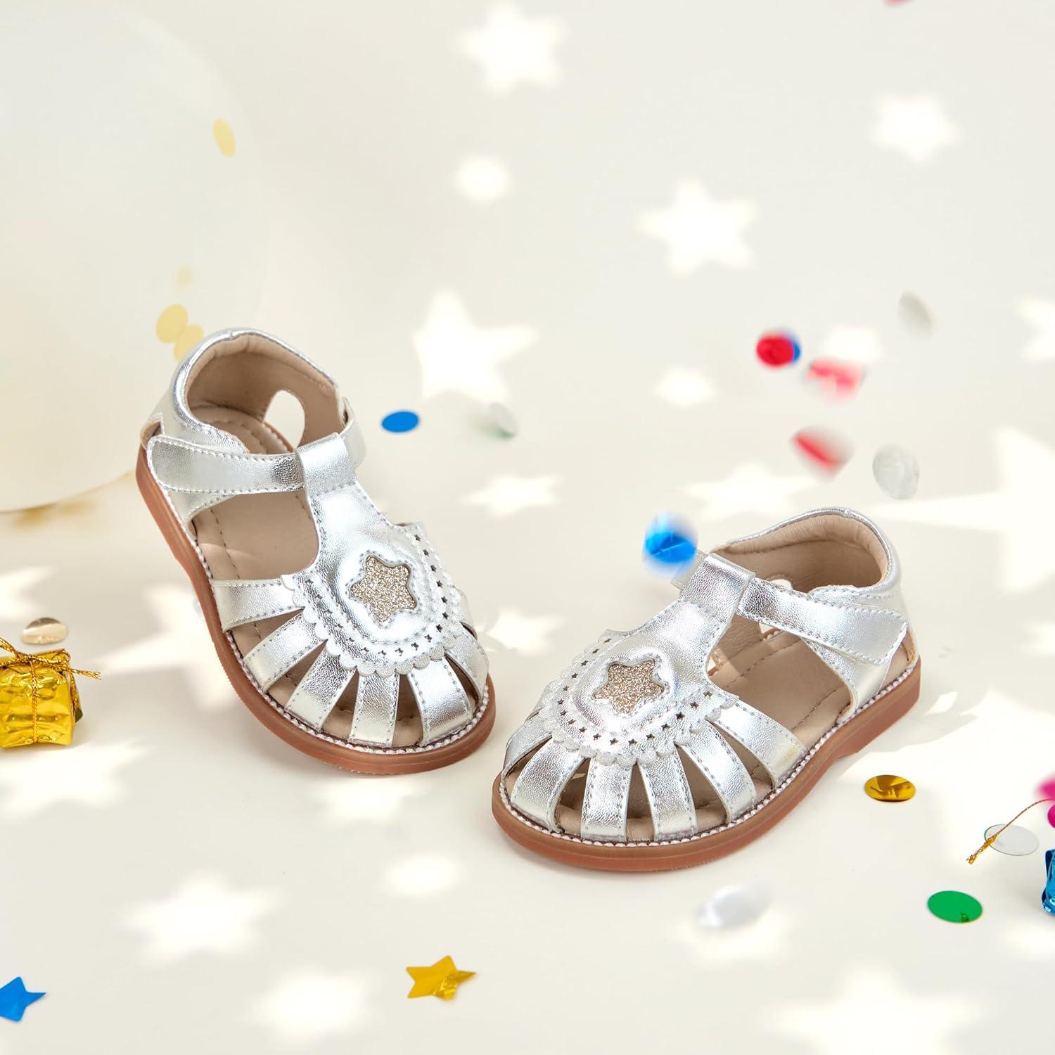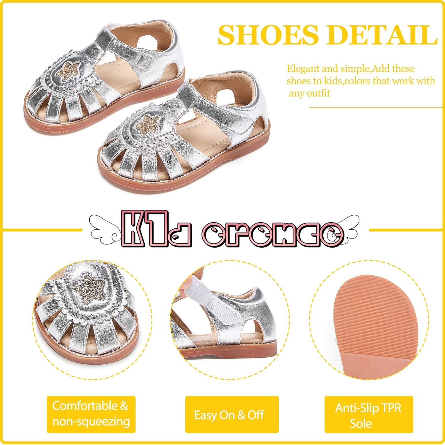 Kiderence Toddler Girls Sandals Little Girls Kids Summer Shoes Toddler Sandals(Ck535 Silver)