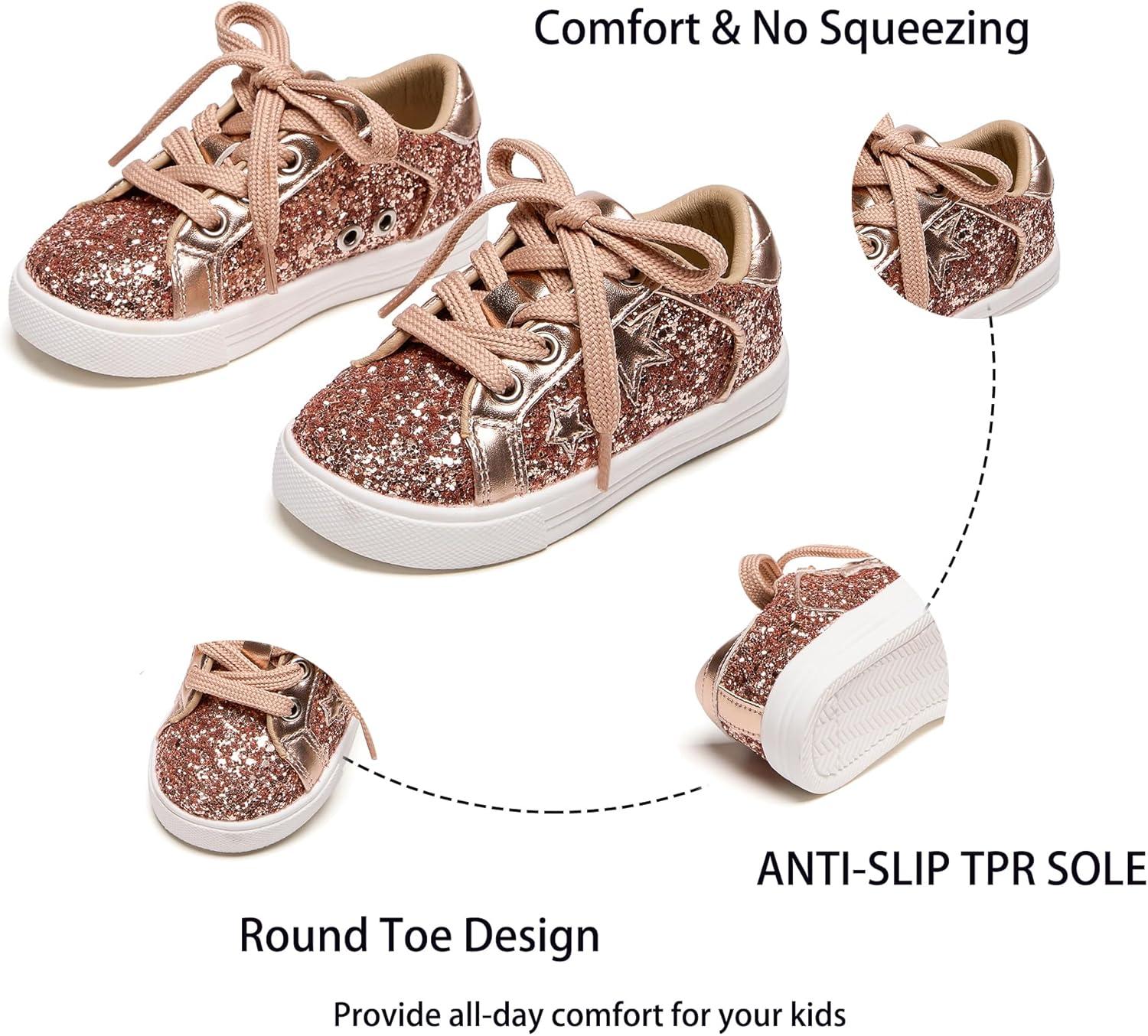 Kiderence Toddler Girls Sneakers Little Girls Running Sports Shoes(Toddler/Little Kids)(Cs06-rose Gold)