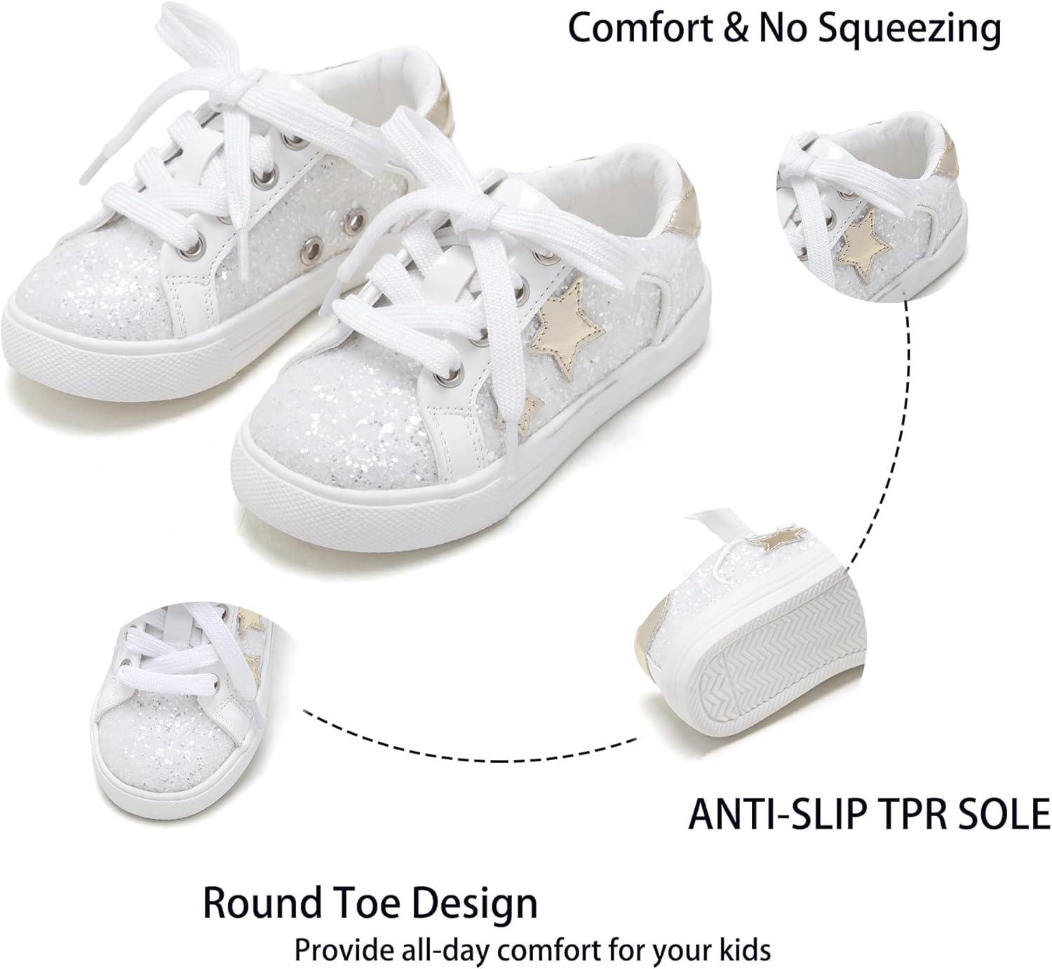 Kiderence Toddler Girls Sneakers Little Girls Running Sports Shoes(Toddler/Little Kids)(Cs06-white)